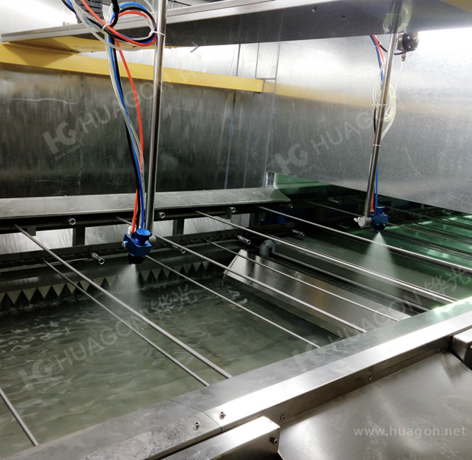 上料-手動靜電除塵-素材預熱-自動追蹤噴涂-靜置-隧道式烘烤-冷卻-下料